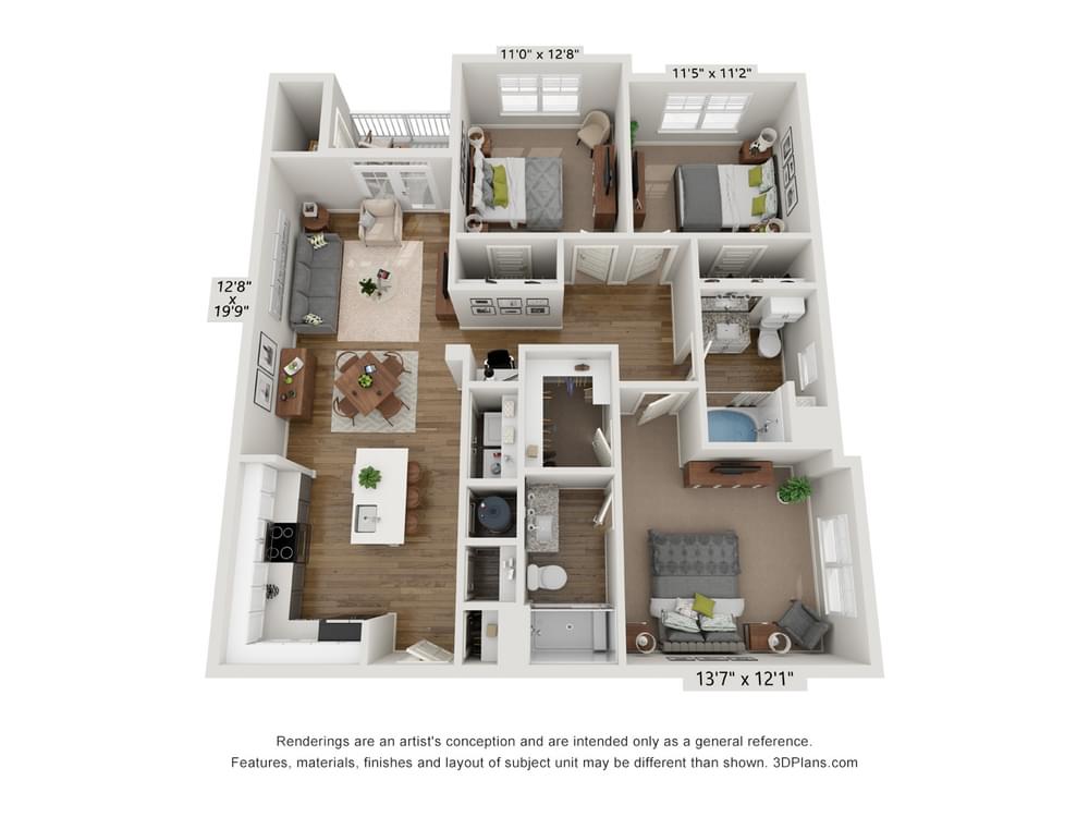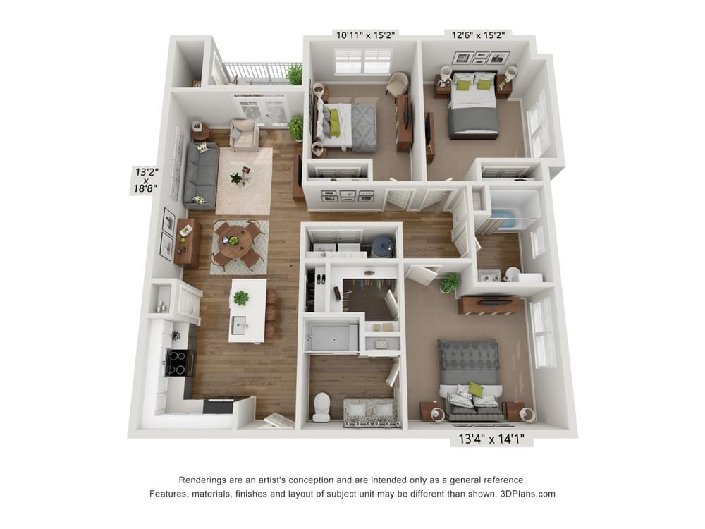 Unit Type3 Bed / 2 BathFloor Area1,315 sq. ft.AvailableTodayStarting at$1,800 / mo